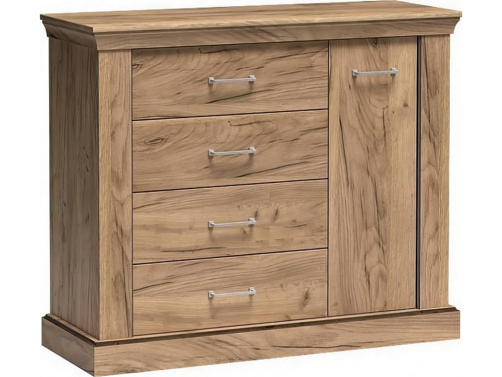 CASA 71001 Sestava nábytku do ložnice v rustikálním stylu. Nábytek je vyroben z kvalitního lamina ohraničeného ABS páskou v barvě dub kraft zlatý. Sestava se skládá z těchto položek (Š x V x H cm) - šatní skříň (146 x 220 x 68 cm), komoda (114 x 96 x 42 cm), postel (205 x 102 x 176 cm), noční stolek (39 x 50 x 37 cm) a zrcadlo (126 x 77 x 5,5 cm). Postel dodáváme včetně roštu, bez matrace. Doporučený rozměr matrace je 160 x 200 cm nebo 2 ks 80 x 200 cm. Kolekce nábytku v sobě spojuje jednoduchost, krásný vzhled a funkčnost. Kolekce se skládá z mnoha prvků a tento široký výběr vám zaručí sestavit si nábytek podle svých vlastních představ a přání. Dodáváme v demontovaném stavu.
