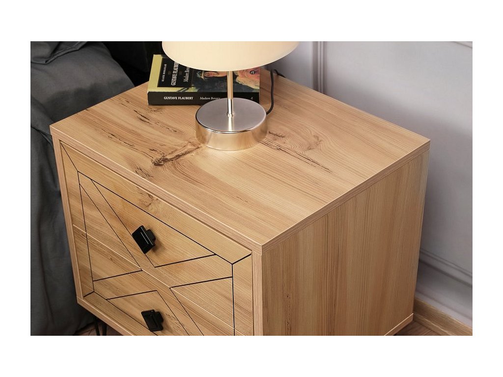 Tento noční stolek je vyroben ze 100% dřevotřísky s melaminovým povlakem a je konstruován tak, aby odolal zkoušce času. Tloušťka 18 mm zajišťuje odolnost a stabilitu, takže si jeho krásu budete moci užívat po mnoho let. Kovové nohy poskytují dodatečnou oporu a dodávají celkovému designu moderní nádech.