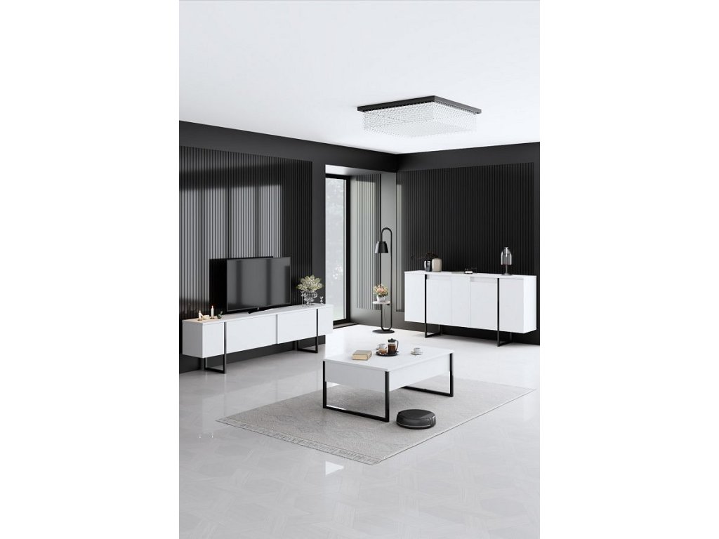 Proměňte svůj obývací pokoj nebo chodbu ve stylové útočiště s komodou. Její minimalistický design a čisté linie vytvářejí atmosféru sofistikovanosti a elegance. Kombinace bílé a černé barvy dodává nádech kontrastu, díky čemuž je všestranným kusem nábytku, který se bez problémů hodí do jakéhokoli stávajícího interiéru.