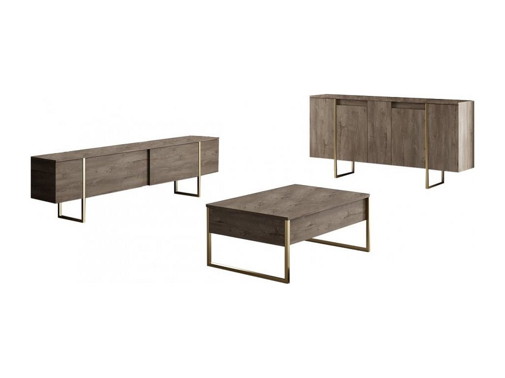 Sofistikovaný design: Kombinace barvy ořechu a zlata vytváří ohromující vizuální dojem, díky čemuž je tato komoda výrazným prvkem v každém prostoru. Její elegantní a moderní design bez námahy doplní jakýkoli styl interiéru a dodá vašemu domovu nádech luxusu.