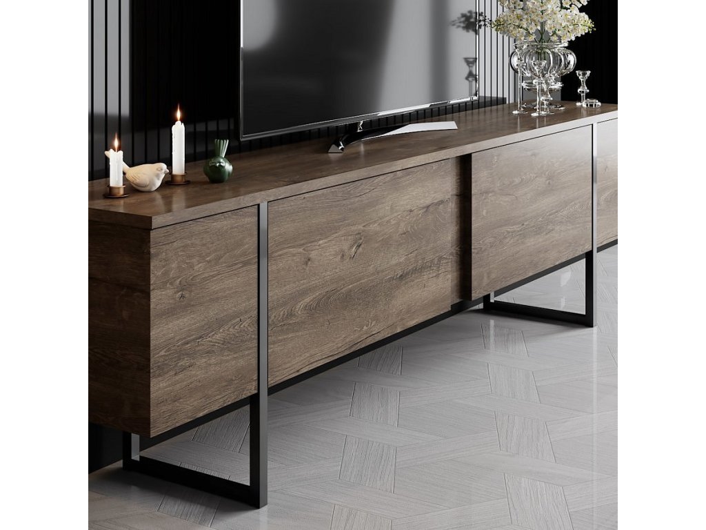 Tento televizní stolek je vyroben ze 100% dřevotřísky s melaminovým povlakem a je navržen tak, aby vydržel zkoušku času. Tloušťka 18 mm zajišťuje výjimečnou pevnost a stabilitu, což vám umožní bezpečně umístit televizor a další elektronická zařízení bez jakýchkoli obav. Kovové nohy poskytují dodatečnou oporu a přispívají k celkové odolnosti stojanu.