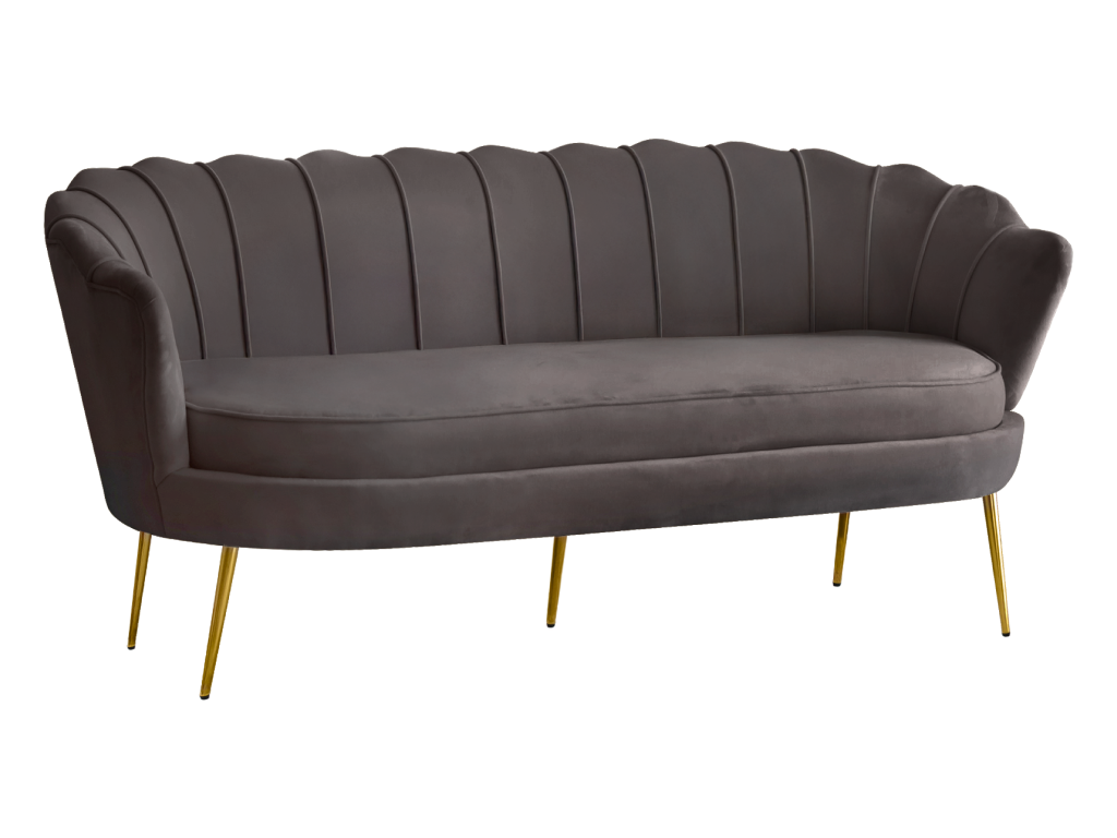 Luxusní pohovka, 3-sed, šedá Velvet látka/zlatá, Art-deco, NOBLEO TYP 2