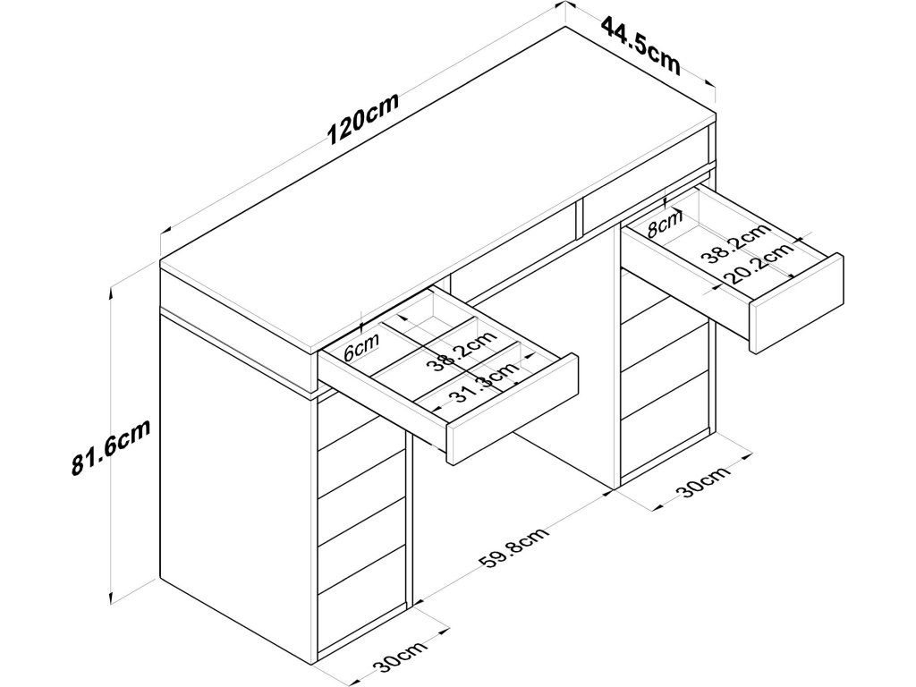 Toaletní stolek nabízí dostatek úložného prostoru a kombinuje funkčnost s minimalistickým designem. Skandinávský styl stolku dokonale zapadne do moderní i klasické ložnice.
