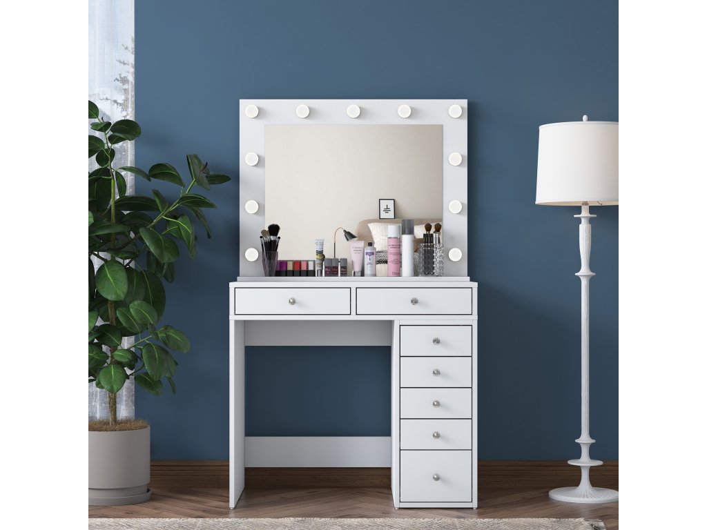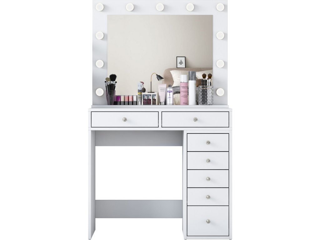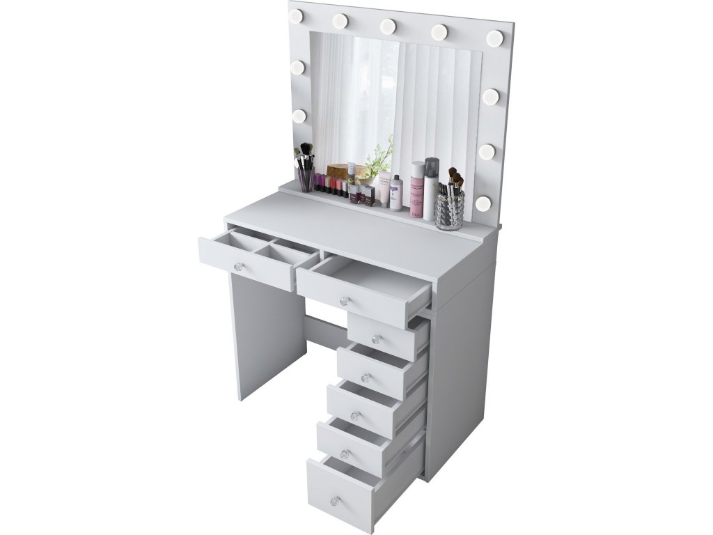 Toaletní stolek je navržen pro každodenní pohodlí a estetickou hodnotu. Nabízí dostatek úložného prostoru, praktické zrcadlo a moderní vzhled, díky čemuž zútulní a zkrášlí vaši ložnici.