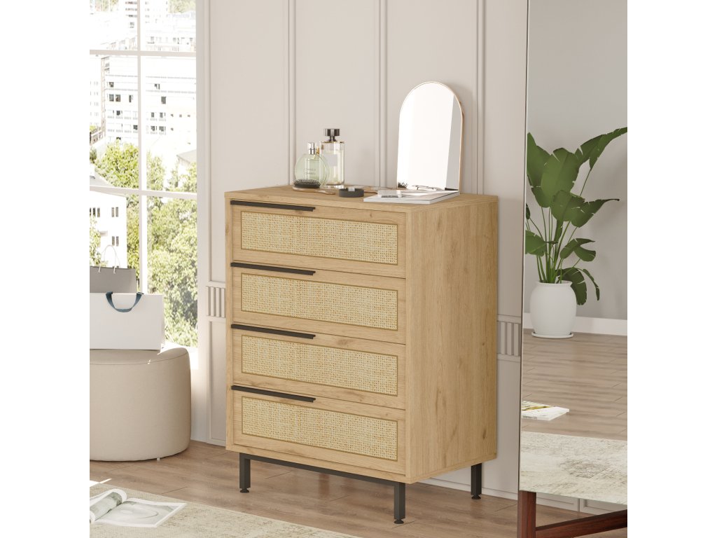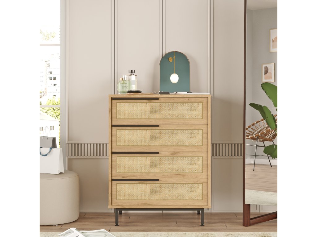 kombinuje praktičnost a moderní estetiku. Čtyři prostorné zásuvky poskytují úložný prostor pro oblečení, dokumenty, dekorace nebo další nezbytnosti. Díky svým kompaktním rozměrům a nožičkám se snadno hodí do různých interiérů, přičemž dodává místnosti elegantní a sofistikovaný vzhled.
