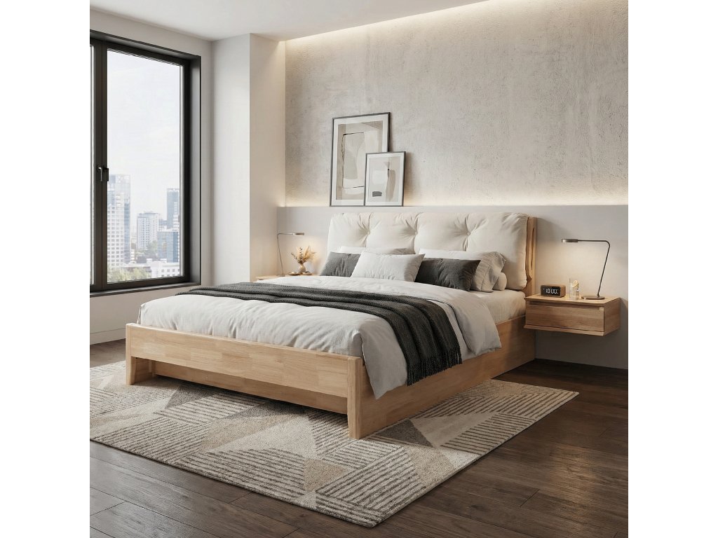Manželská postel, 180x200, masivní dřevo, přírodní, FLORENCIA