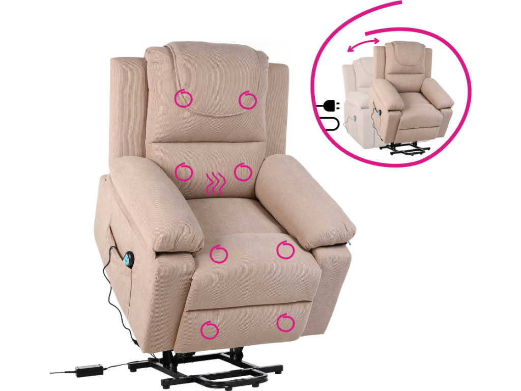 Masážní polohovací křeslo s vyhříváním, hnědá, LIFTELO