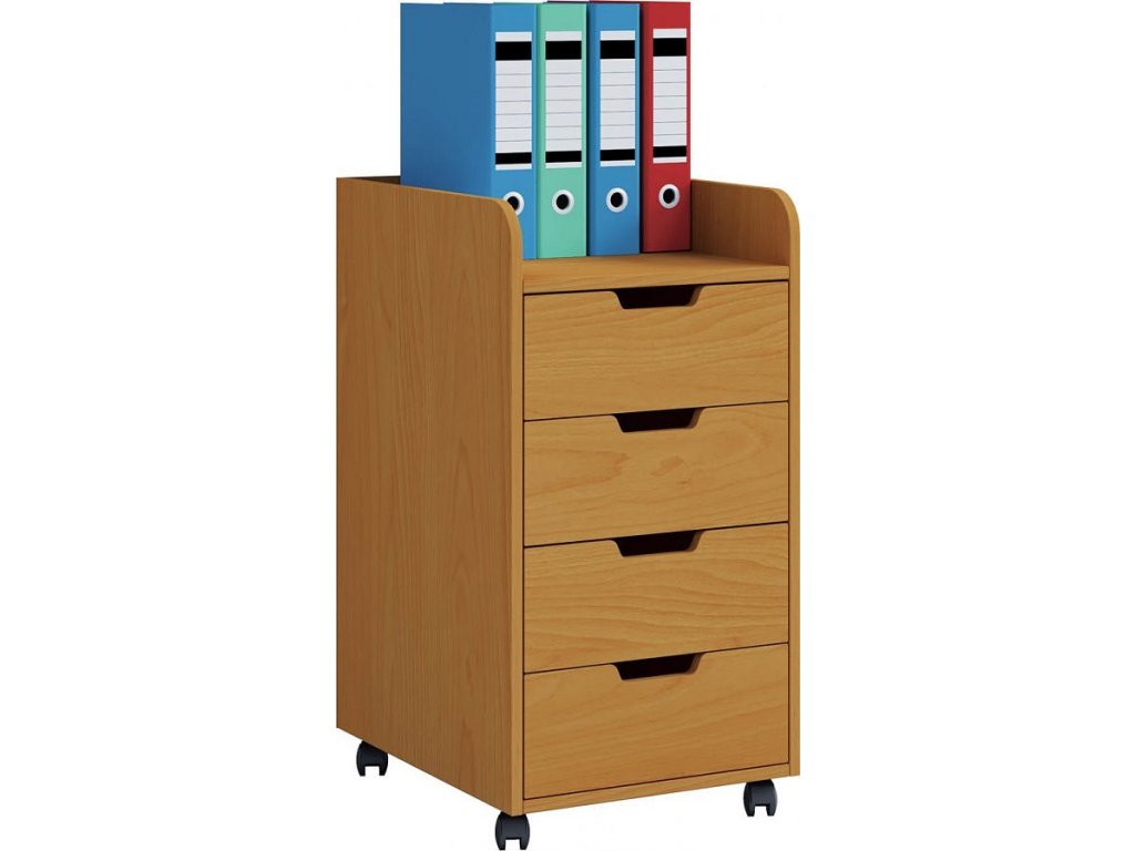 Mobilní kontejner se 4 zásuvkami s hladkým chodem a praktickým ohraničeným prostorem na odkládání.