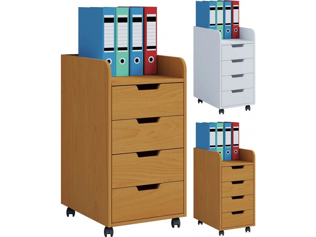 Mobilní kontejner se 4 zásuvkami s hladkým chodem a praktickým ohraničeným prostorem na odkládání.
