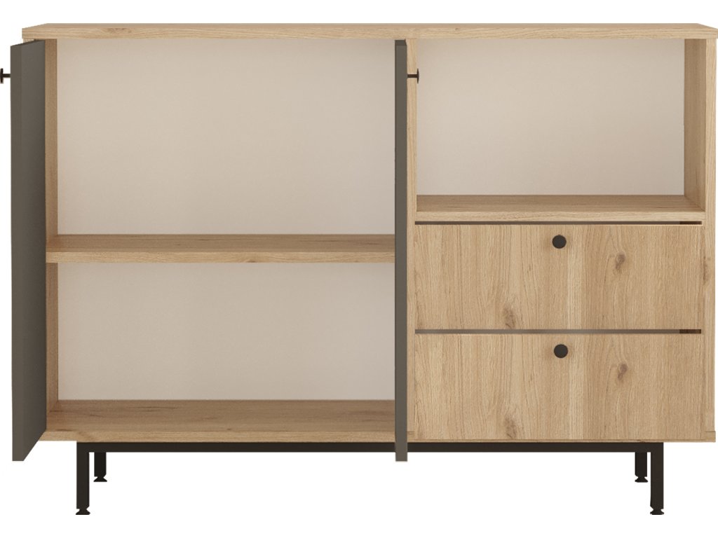 - Vybavení: 2 zásuvky, 2 plná dvířka a regálek