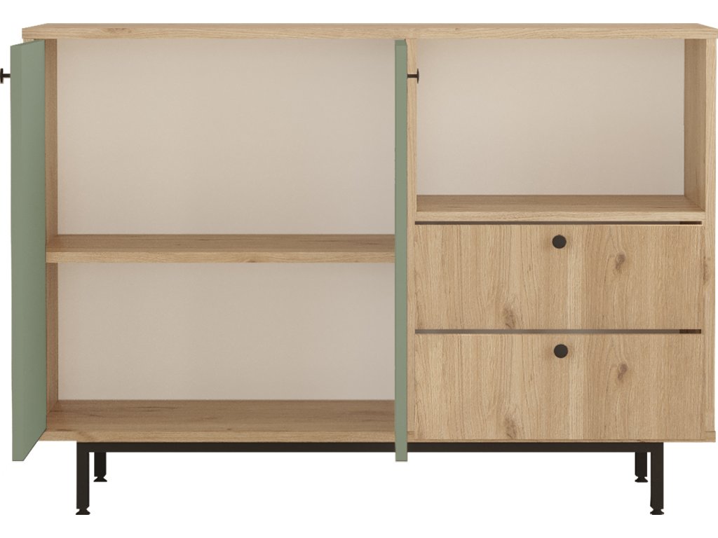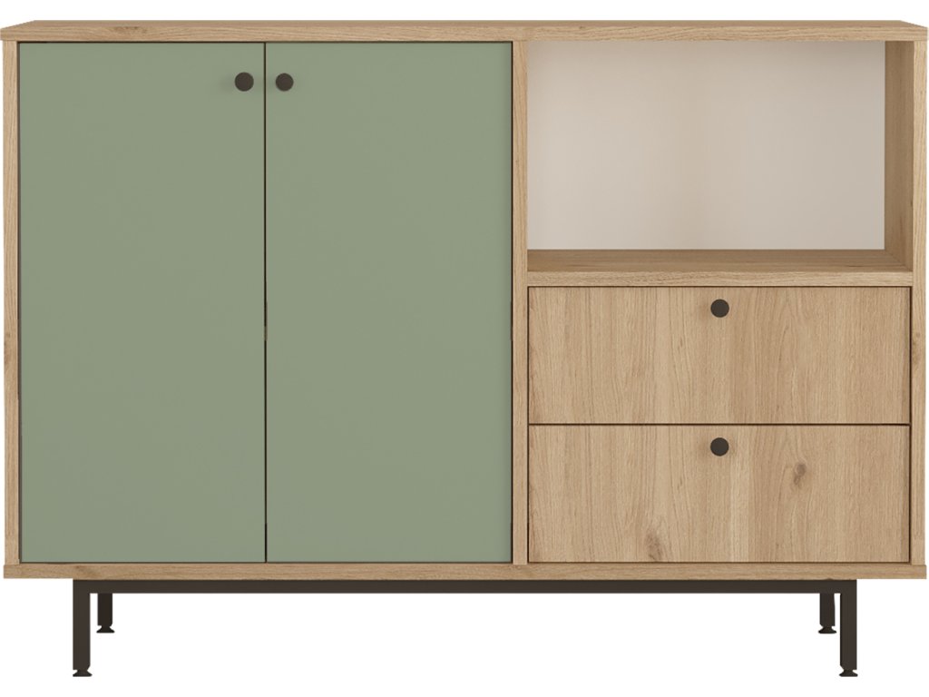 - Vybavení: 2 zásuvky, 2 plná dvířka a regálek