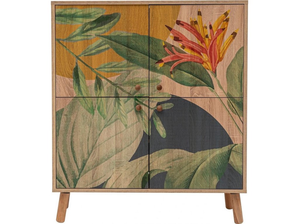 Kombinace barev Sonomo, zelené a žluté dodává této skříňce moderní a zářivý vzhled. Bez námahy se hodí do jakéhokoli interiéru a dodá vašemu prostoru barevný a osobitý nádech. Rozměry šířky 95 cm, výšky 111 cm a hloubky 36 cm jej předurčují do jakékoli místnosti, velké i malé.
