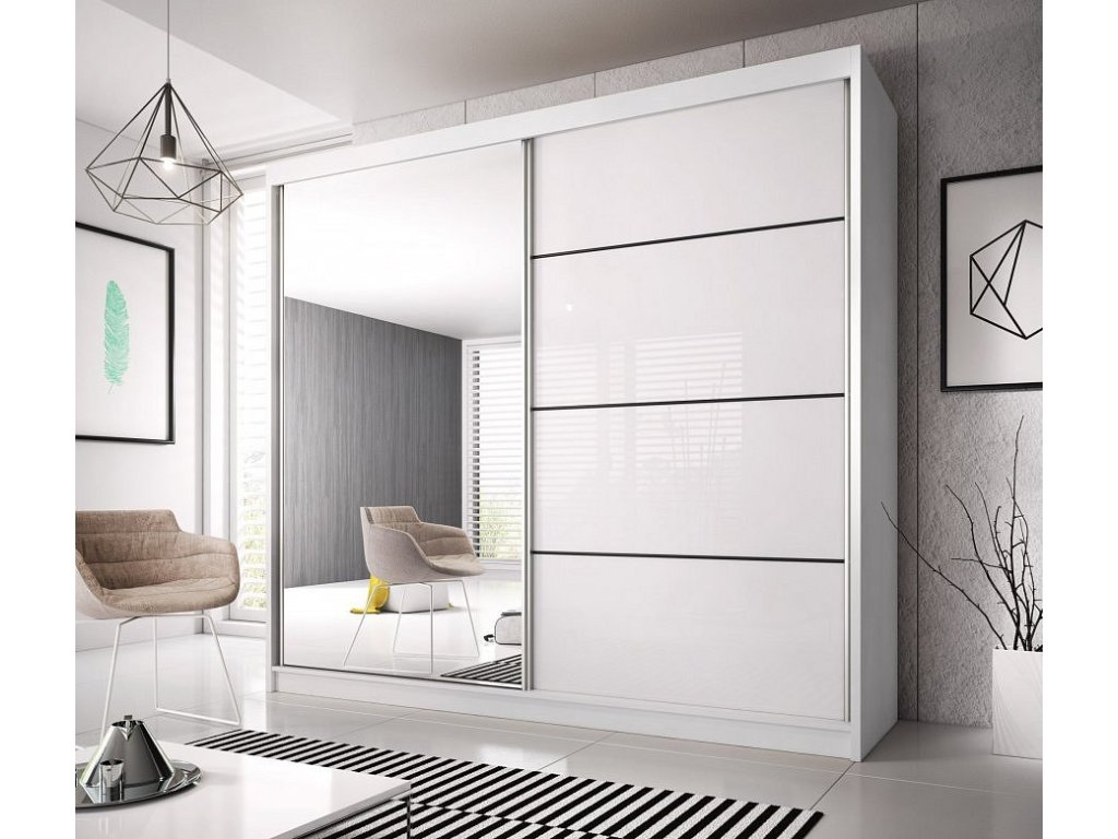 MURPHY 35 (MULTI 35) - ŠATNÍ SKŘÍŇ 200(203)- 2 dvéřová se zrcadlem - bílá/bílá pololesk/ zrcadlo (IZ)(K150)