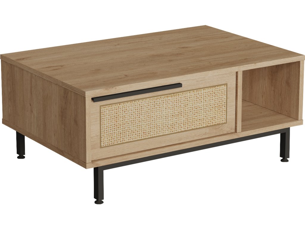 kombinuje styl a praktičnost. Jeho regálek poskytuje prostor pro odkládání časopisů, knih nebo dekorací, zatímco plné dvířko ukrývá prostor pro další předměty, které chcete mít po ruce, ale zároveň skryté. Moderní design a funkčnost činí tento stolek skvělým doplňkem do každého obývacího pokoje.