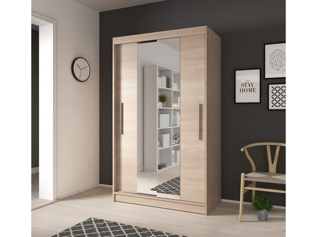 NAOMI 01 (NEOMI 01=4balíky) - ŠATNÍ SKŘÍŇ 120 - 2 dvéřová - korpus dub sonoma / dveře dub sonoma se zrcadlem (IZ) (K150-Z)
