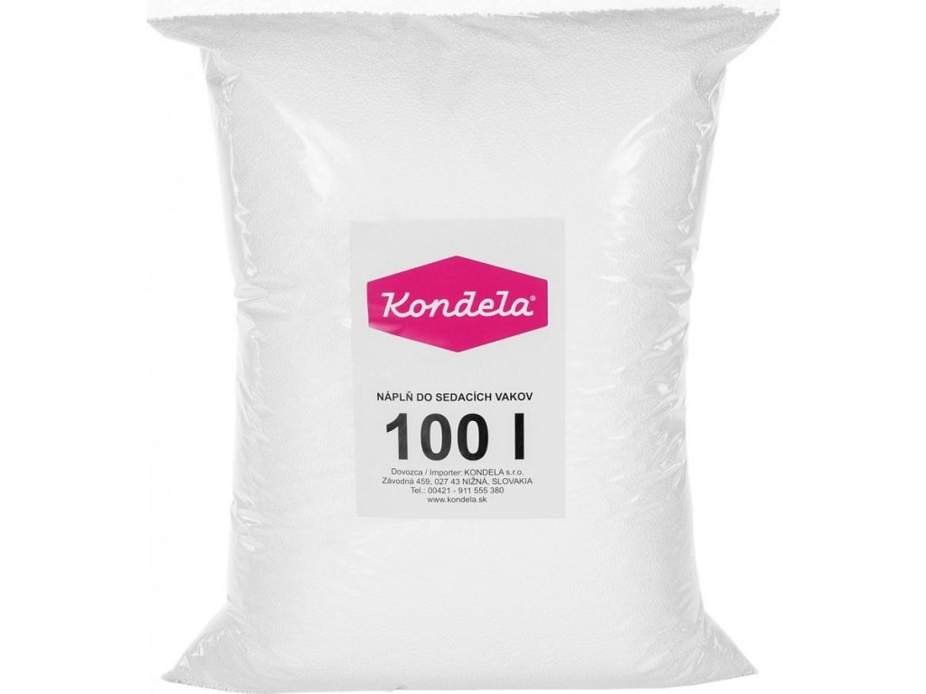 Materiál: polystyren Barva: bílá Objem: 100 l zdraví nezávadné Vhodné i pro alergiky a děti pravidelný tvar vzdušnost lehký materiál Jednoduché doplňování Regulování tuhosti vaku Dodávané v pytli
