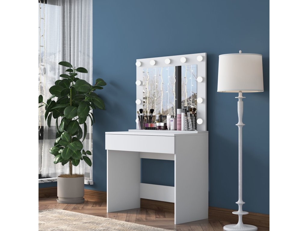 Toaletní stolek je dokonalým doplňkem do každé ložnice. Díky modernímu skandinávskému stylu, čistým liniím a bílé barvě přináší do vašeho interiéru eleganci a praktičnost. Je navržen pro maximální pohodlí a ideální organizaci.