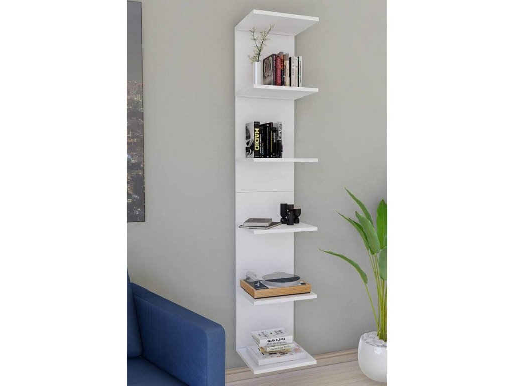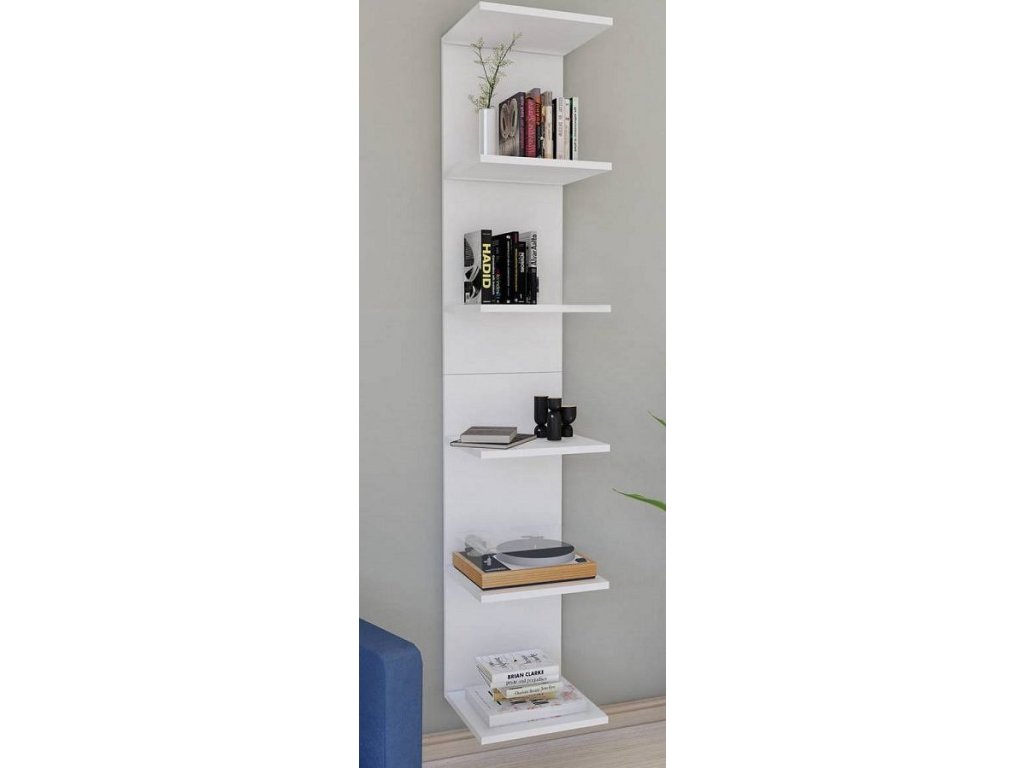 Regál Lazas je moderní otevřená polička určená k montáži na stěnu. Díky minimalistickému provedení bez bočních stěn působí mimořádně elegantně a dodá každému interiéru jedinečný charakter. Díky pěti prostorným přihrádkám je ideální jako police na knihy na zeď, ale také jako stylové poličky na zeď pro dekorace, rostliny či sběratelské předměty. Stabilní zadní stěna zajišťuje bezpečné upevnění na zeď a dlouhou životnost.