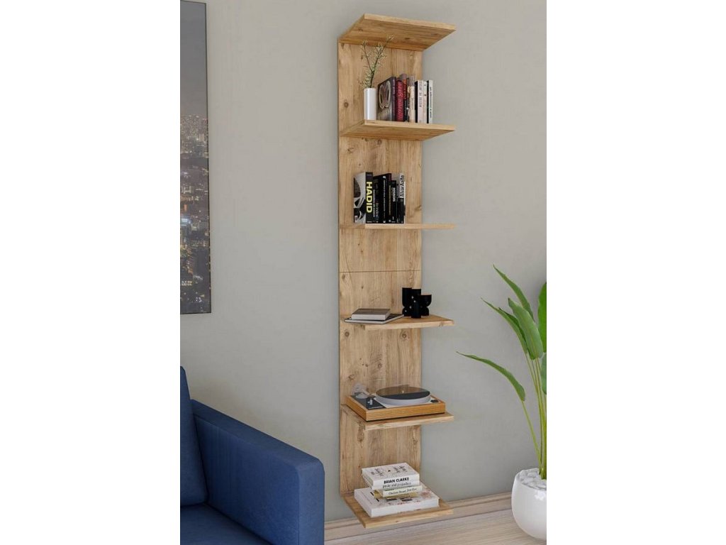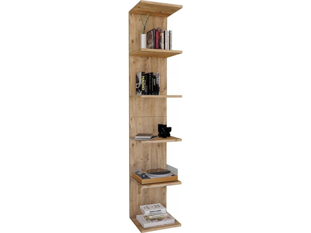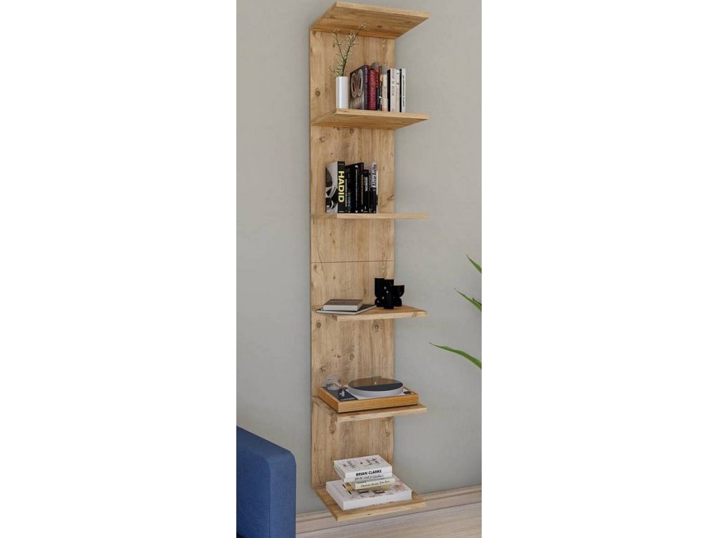 Regál Lazas je moderní otevřená polička určená k montáži na stěnu. Díky minimalistickému provedení bez bočních stěn působí mimořádně elegantně a dodá každému interiéru jedinečný charakter. Díky pěti prostorným přihrádkám je ideální jako police na knihy na zeď, ale také jako stylové poličky na zeď pro dekorace, rostliny či sběratelské předměty. Stabilní zadní stěna zajišťuje bezpečné upevnění na zeď a dlouhou životnost.