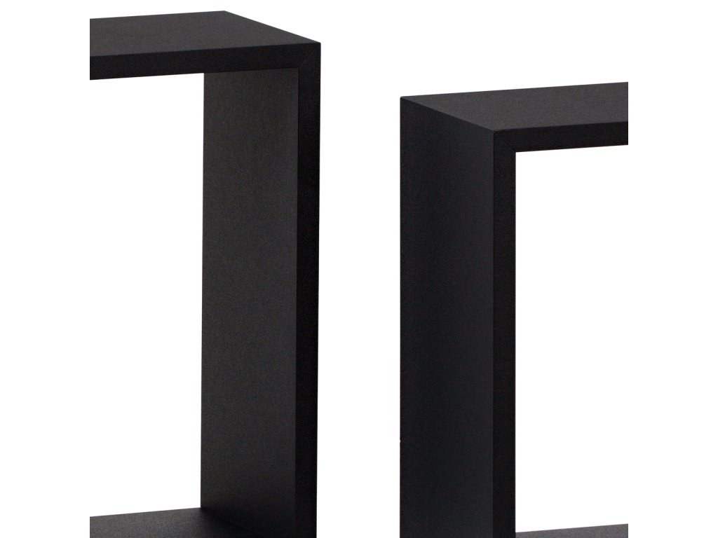 Sada tří nástěnných poliček v matné černé barvě je vyrobena z MDF materiálu, který nabízí kvalitní zpracování a snadnou údržbu. Poličky mají jednoduchý, moderní design s čistými liniemi a hranami, které podtrhují jejich minimalistický vzhled. Různé velikosti jednotlivých kusů umožňují variabilní uspořádání na stěně podle potřeby a prostoru. Jsou vhodné pro vystavení dekorací, knih nebo drobných předmětů a díky pevnému provedení zajistí stabilní oporu. Balení obsahuje ochrannou fólii pro bezpečnou manipulaci a přepravu.