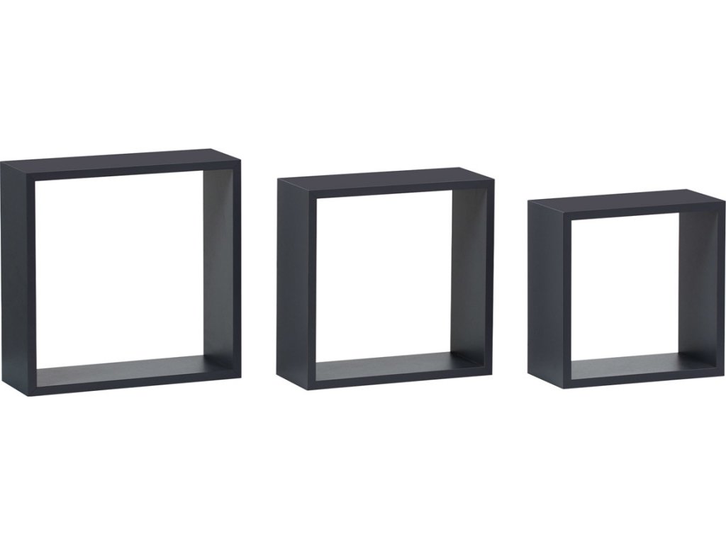 Sada tří nástěnných poliček v matném šedém provedení je vyrobena z MDF materiálu, který zajišťuje pevnost a stabilitu. Jednoduchý hranatý tvar a neutrální barva umožňují snadné začlenění do různých interiérů, od moderních po minimalistické. Poličky jsou baleny v ochranné fólii, což usnadňuje jejich bezpečnou manipulaci a montáž. Vhodné pro vystavení dekorací, knih nebo drobných předmětů, přičemž jejich kompaktní rozměry šetří prostor na stěně.