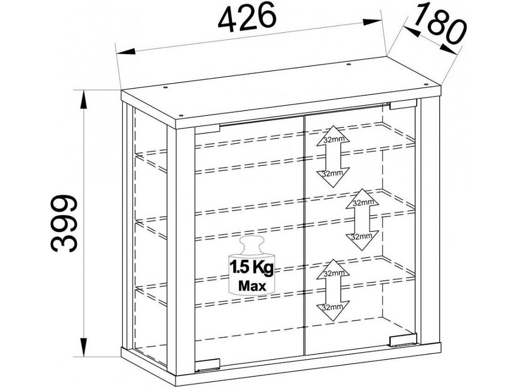 Vitrosa S je elegantní nástěnná skříňka, která kombinuje moderní design a praktické využití. Díky skleněným dvířkům a poličkám působí lehce a vzdušně, přitom nabízí dostatek prostoru pro vaše oblíbené dekorace, suvenýry nebo sběratelské kousky.