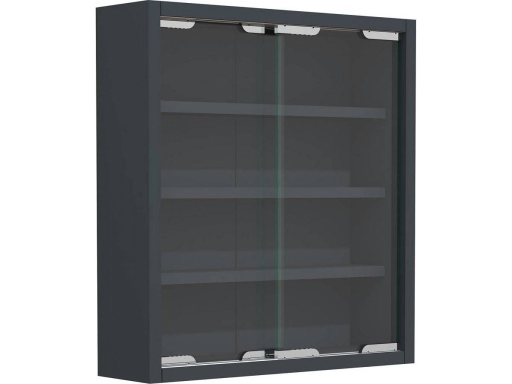 Dvoje posuvná skleněná dvířka a tři police poskytují čtyři úložné přihrádky. Skříňku lze snadno kombinovat s dalšími produkty ze série VCM Agisa.