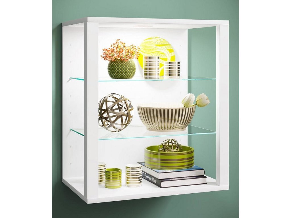 Hlavní vlastnosti: - Dvě skleněné police - Individuálně nastavitelné police - Vitrína bez skleněných čel - Osvětlení volitelné - Rozměry V 60 x Š 52 x H 35 cm Designér krásně zkombinoval funkci a vzhled v otevřené vitríně „Glasol SW“. Dvě úzké příčky dodávají vitríně zvláštní vzhled. Skleněné police jsou nastavitelné a lze je proto kdykoli přizpůsobit osobním potřebám. Montážní materiál na zeď je již součástí dodávky. Vitrínu lze doplnit LED osvětlením „VCM Leuchto“. Od 70. let 20. století se VCM specializuje na návrh, výrobu a prodej nábytku s férovým poměrem cena/výkon a již zkrášlila miliony domácností.