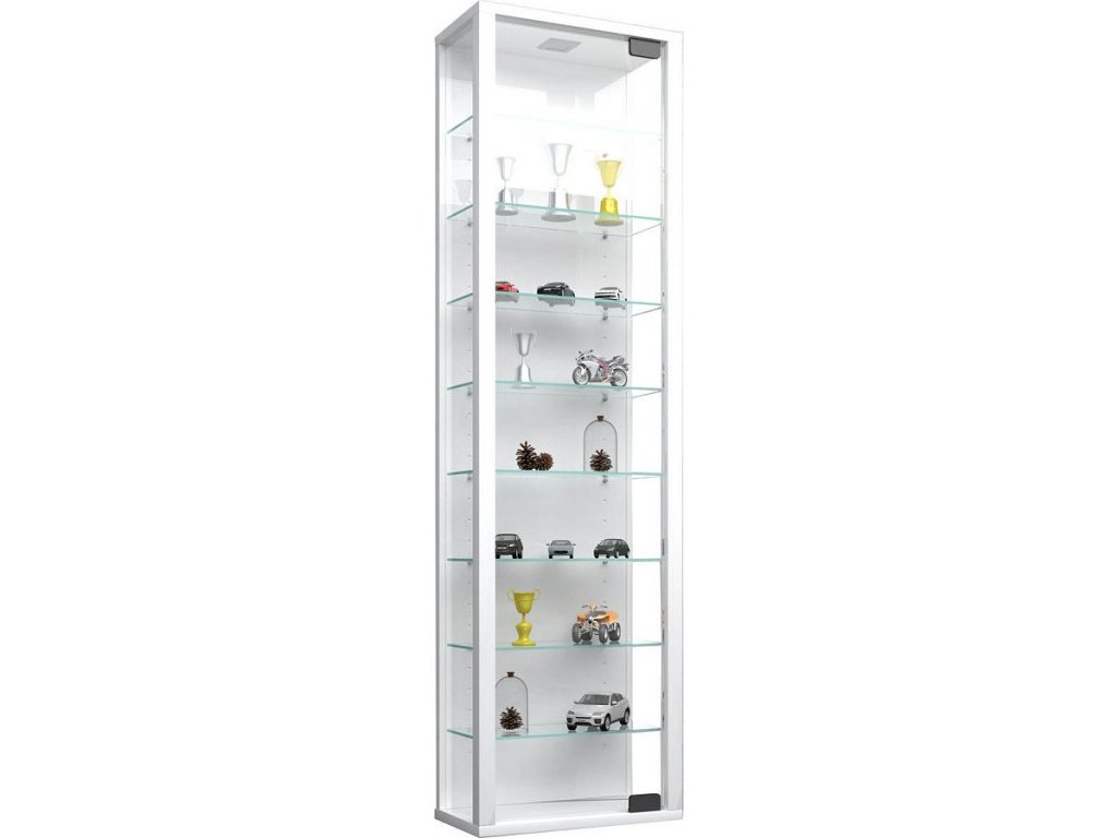 Vitrína s 8 variabilními policemi a LED osvětlením na prezentaci vašich sbírek či dekoračních předmětů ve vysokém standardu provedení. Vhodná jak do domácnosti, tak do kanceláře či obchodních prostor. Dveře, boční stěny i police jsou z čirého skla.