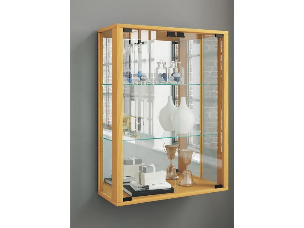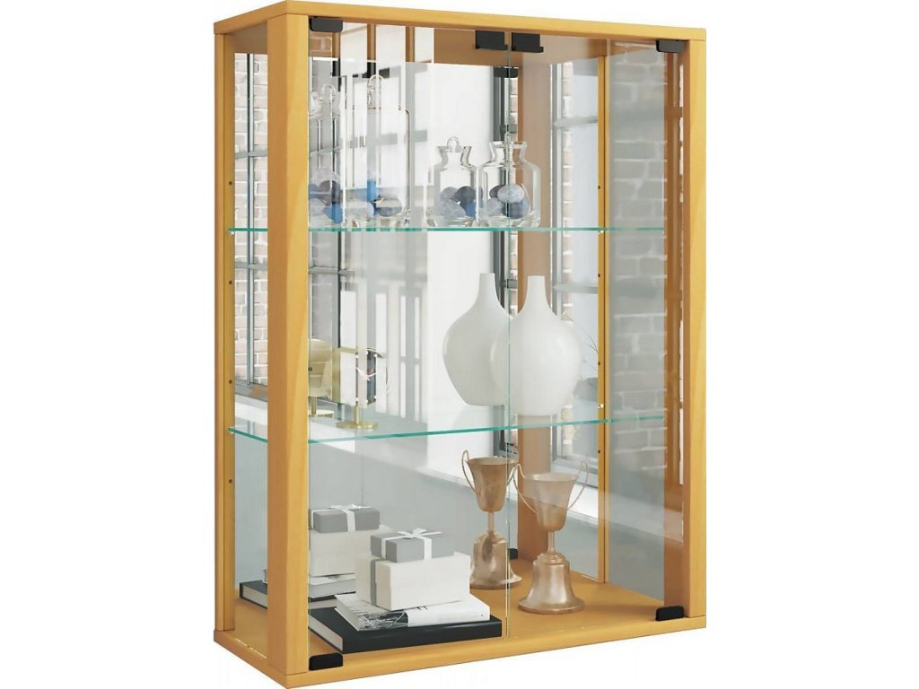 Nástěnná vitrína Udina se zrcadlem včetně LED osvětlení, buk