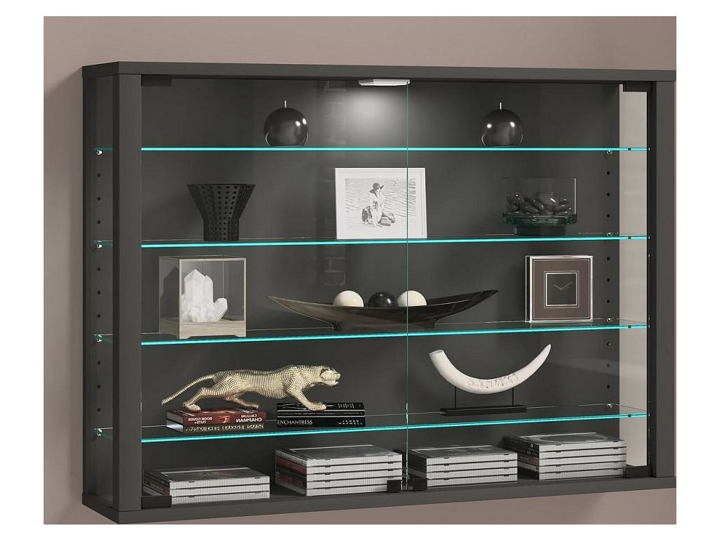 Stylová prosklená vitrína VCM Vitrosa L promění každou stěnu v elegantní výstavní prostor. Tato moderní nástěnná vitrína nabízí dostatek místa pro dekorace, sběratelské předměty i skleněné doplňky – ideální volba pro všechny, kteří chtějí mít své poklady přehledně vystavené.