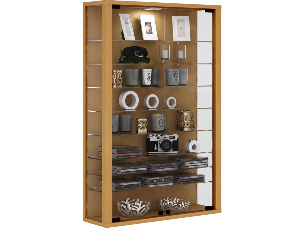 Skleněná vitrína Vitrosa mini s 8 variabilními skleněnými policemi. Dvířka, boční stěny i police jsou vyrobeny z bezpečnostního ESG skla. Obsahuje servisní balíček a kompletní montážní materiál.