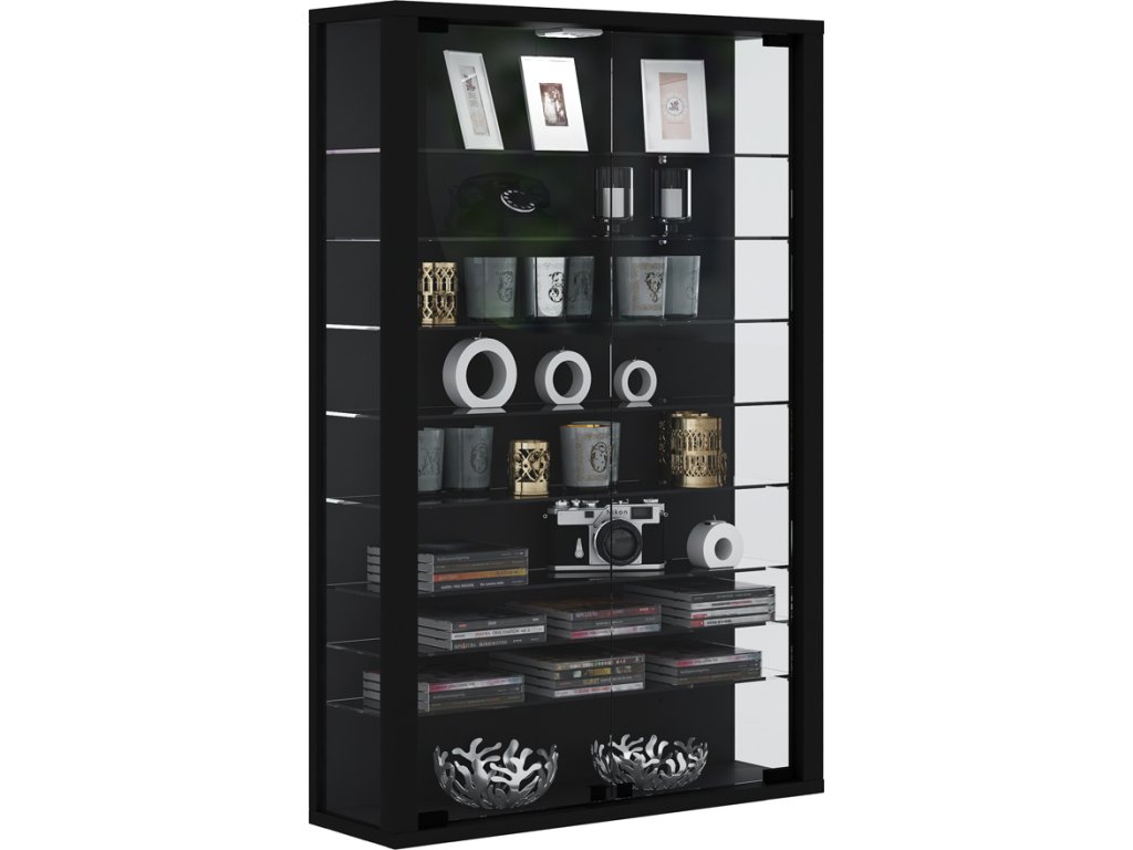 Skleněná vitrína Vitrosa mini s 8 variabilními skleněnými policemi. Dvířka, boční stěny i police jsou vyrobeny z bezpečnostního ESG skla. Obsahuje servisní balíček a kompletní montážní materiál.