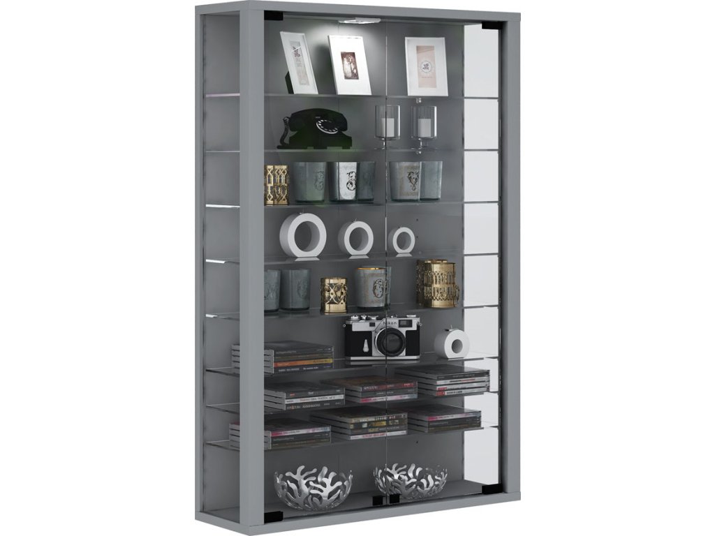 Nástěnná vitrína Vitrosa mini s LED osvětlením, stříbrná