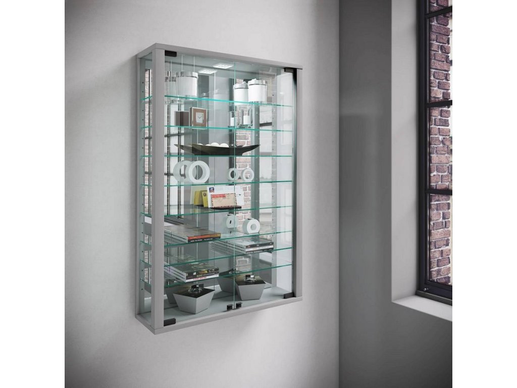 Nástěnná vitrína Vitrosa Mini se zrcadlem včetně LED osvětlení, stříbrná