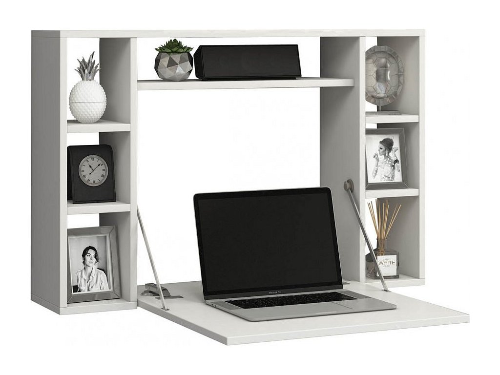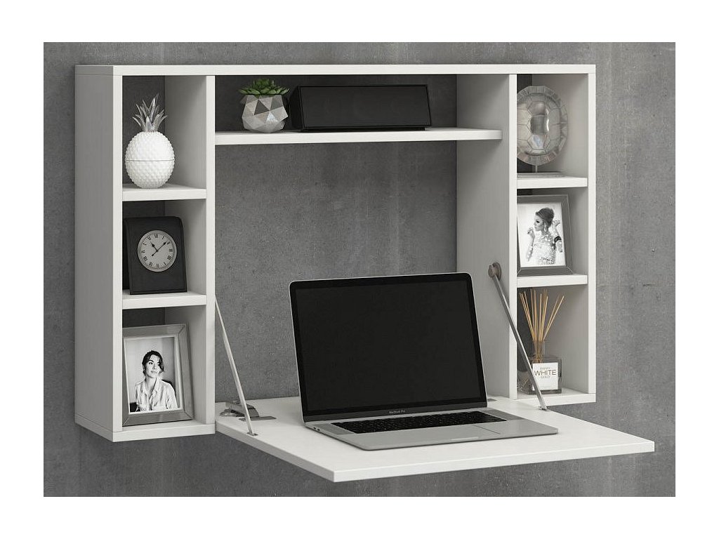 Ve věku notebooků a tabletů je vhodný nábytek potřebný. Nástěnná police se jediným pohybem transformuje na malé kancelářské pracoviště, které nabízí dostatek prostoru pro práci.
