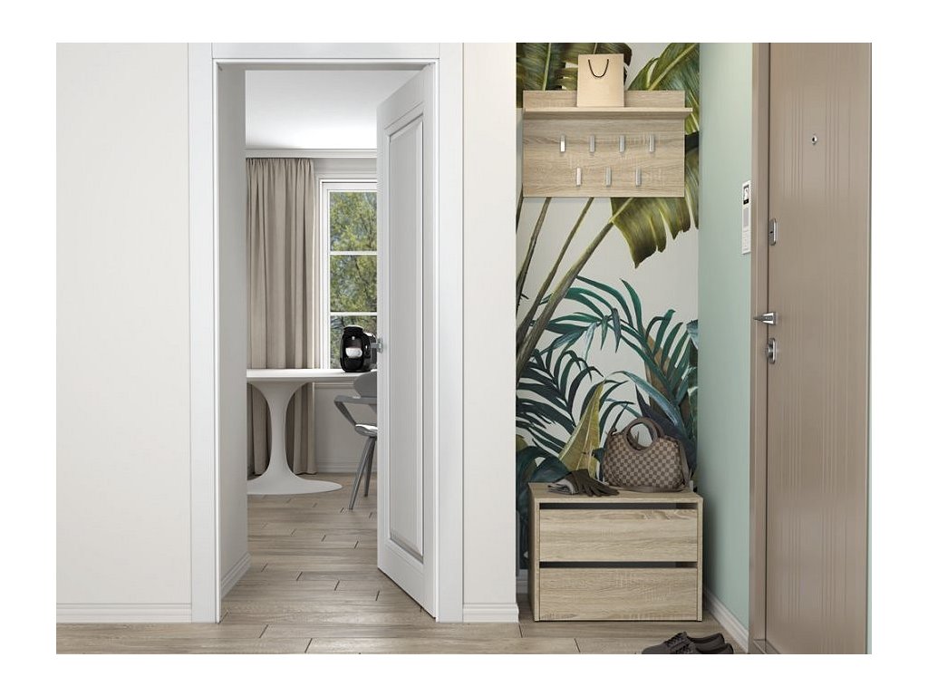 Praktický nástěnný věšák Modis 2F je ideálním řešením pro každou předsíň – ať už malou, nebo prostornou. Sedm pevných háčků a odkládací police zajistí dostatek místa pro kabáty, tašky i doplňky. Díky kvalitnímu zpracování a nadčasovému designu se věšák hodí do jakéhokoli interiéru. Nábytek je vyroben z kvalitního lamina, které je snadno udržovatelné a odolné proti oděru, dlouhou životnost zajišťují hrany povrchově upravené ABS materiálem.
