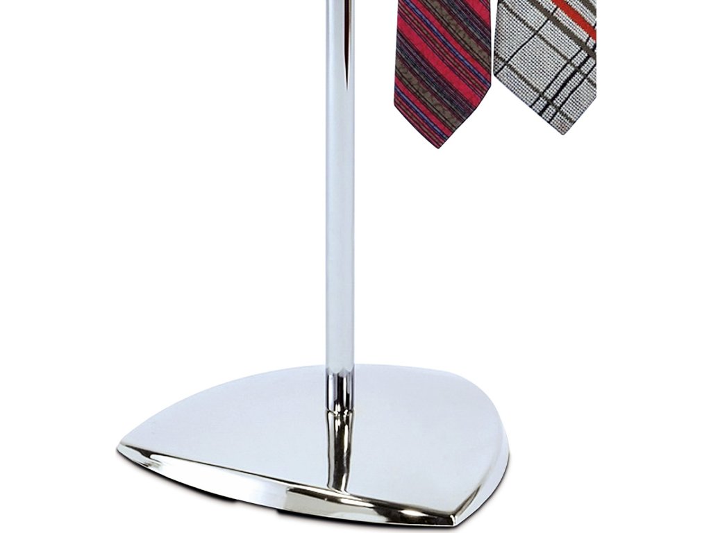 Němý sluha v lesklém chromovém provedení nabízí praktické a stylové řešení pro uložení oblečení a doplňků. Jeho kovové tělo s výškou 105 cm je navrženo tak, aby pojalo až 5 kg, což umožňuje pohodlné zavěšení košil, kalhot nebo kravat. Stabilní základna ve tvaru trojúhelníku zajišťuje pevnou oporu a zároveň dodává celku moderní vzhled. Vhodný je do ložnice, šatny nebo předsíně, kde pomůže udržet pořádek a připravit oblečení na další den.