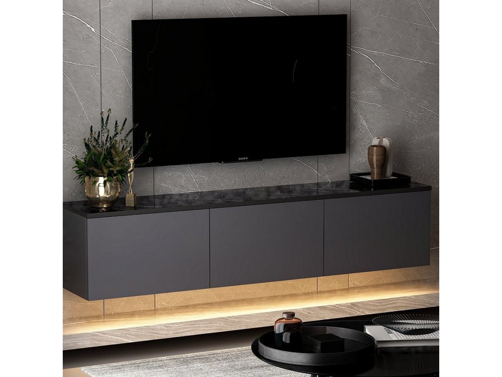 Neon Illuminated závěsný TV stolek, antracit / černý mramor
