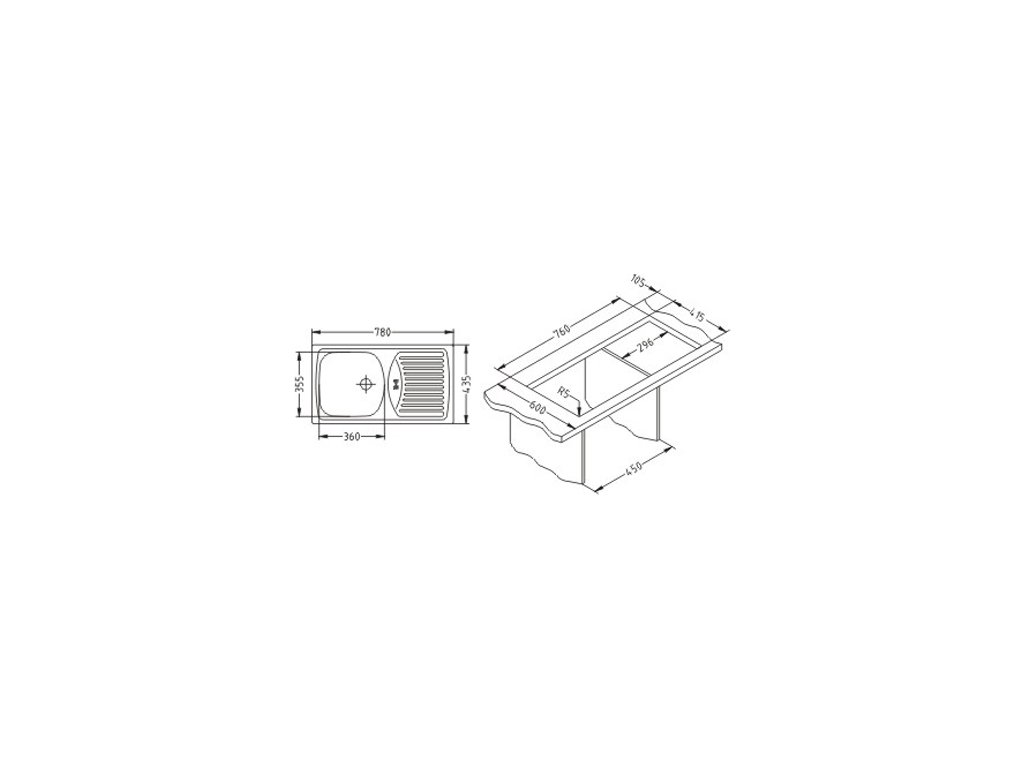 z materiálu Cr Ni 18/10 největší jakosti. Tato potravinářská ocel s vysokým obsahem chrómu a niklu je nejvhodnější pro výrobu nerezových dřezů, mezi největší přednosti patří odolnost proti korozi i při narušeném povrchu, odolnost proti vysokým teplotám, odolnost vůči chemickým účinkům a nárazům, vysoká životnost a hygiena. Dřez se neloupe, nemůže prasnout a rozbít se. Je recyklovatelný v hutnické výrobě, tím je šetrný k životnímu prostředí. Povrch dřezu je hladký, rozměry dřezu - 78 x 43,5 cm, rozměr dřezové nádoby 36 x 35,5 x 15 cm. Dřezová plocha obsahuje odtok napojený na sifon, který je součástí balení. Součástí sifonu je i přípojka na myčku s kompletním montážním příslušenstvím. Dřez je vestavný do pracovní desky, která se pokládá na kuchyňskou skříňku pod dřez, která má šířku min. 45 cm. Dřez je reversibilní (dá se uložit z obou stran). V naší nabídce nabízíme vhodné vodovodní baterie.