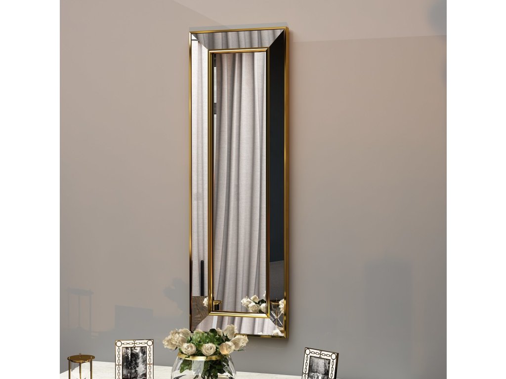 Zrcadlo je dokonalou volbou pro ty, kteří chtějí svému interiéru dodat nádech luxusu. Zlatý rám a sofistikovaný design zrcadla promění vaši předsíň nebo obývací pokoj v elegantní prostor plný stylu.