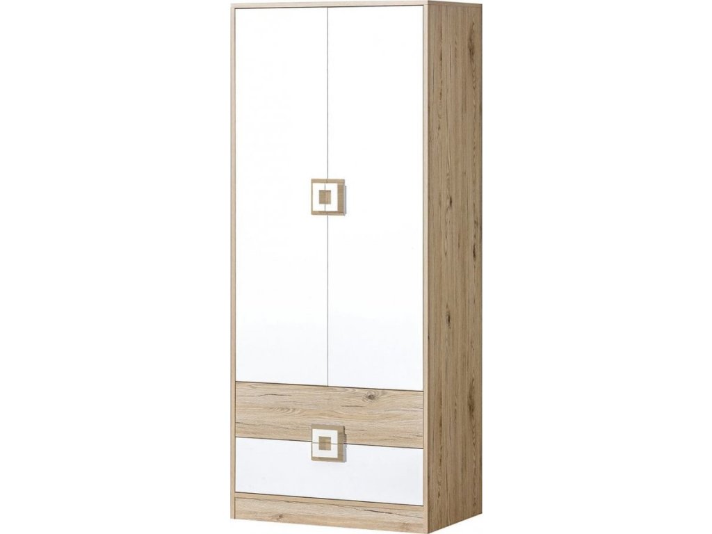 NIKOS 1- Skříň šatní 80 (NICO 1) - bílá/dub světlý- úchyt dub světlý (DO) (K150-Z)