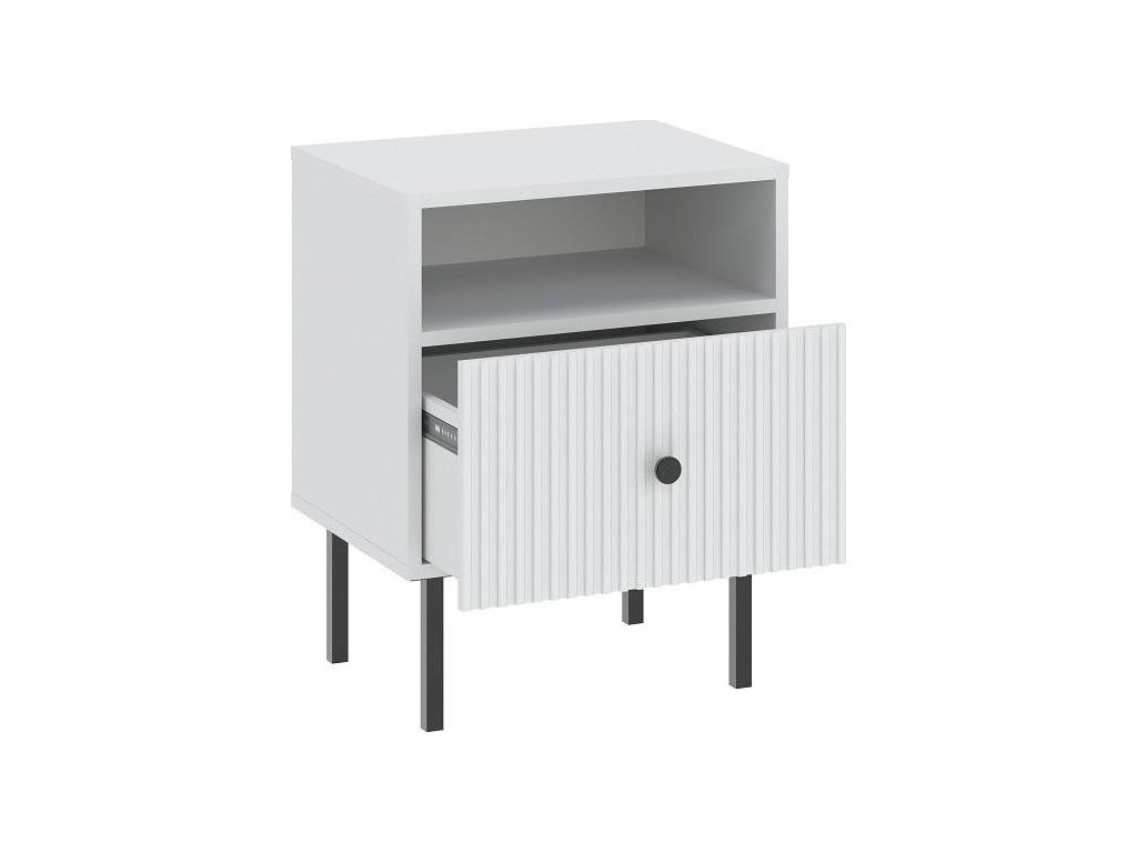 CASA 85039 Noční stolek se zásuvkou v elegantním stylu, je vyroben z kvalitní LTD desky v barevném provedení bílá. Přední část nábytku je doplněna dekorem frézovaných dveří. Vysoké kovové nožky nábytku a úchyty jsou v barevném provedení černá. V naší nabídce naleznete více variant nábytku této řady. Dodáváme v demontovaném stavu.