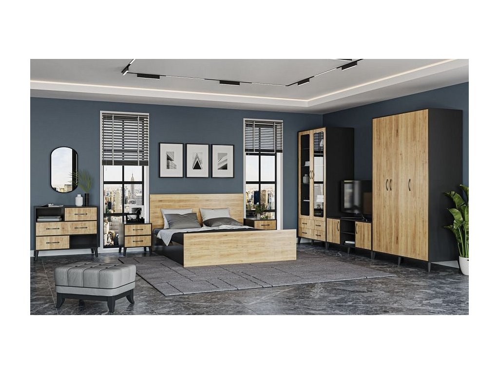 CASA 19021 Noční stolek se dvěma zásuvkami, korpus je vyroben z LTD desky odolné vůči poškrábání v barvě antracit, čela zásuvek jsou vyrobeny z desky MDF v barvě dub wotan. Zásuvky jsou vybaveny teleskopickými výsuvy. Úchyty a nožky jsou v barvě antracit. Dodáváme v demontovaném stavu.