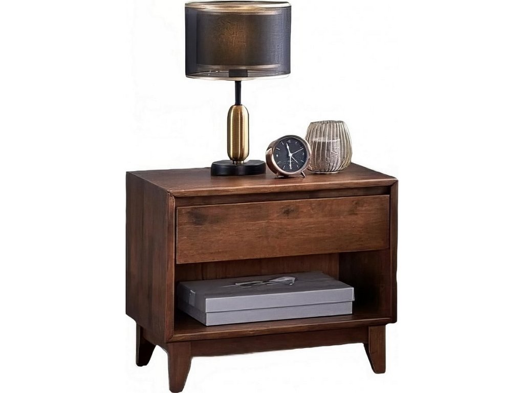 CASA 95153 Moderní noční stolek se zásuvkou originálního vzhledu. Konstrukce je ze dřeva v odstínu vlašský ořech. Dodáváme v demontovaném stavu.