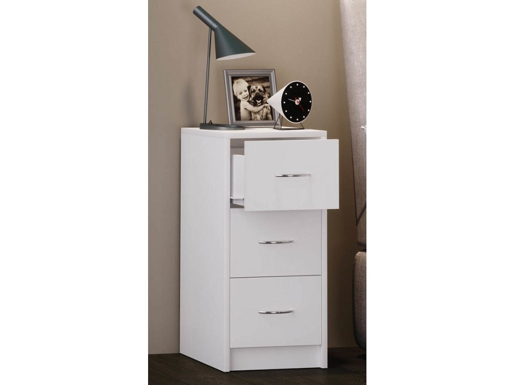 S nočním stolkem máte v ložnici vždy pořádek a potřebné věci po ruce. Díky třem zásuvkám vypadá stolek moderně a nadčasově.