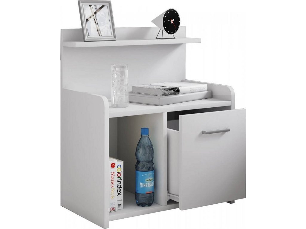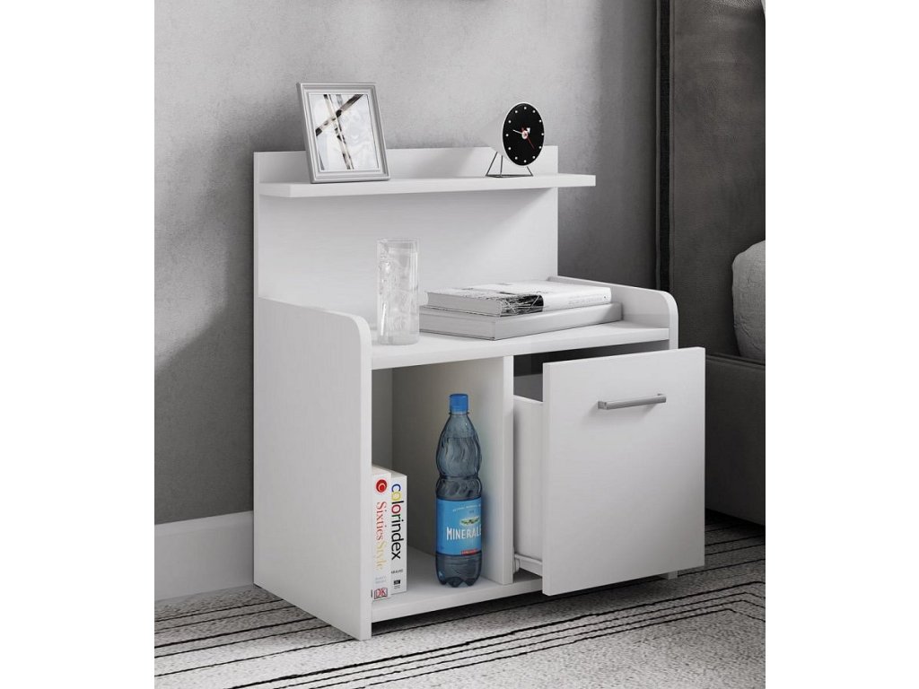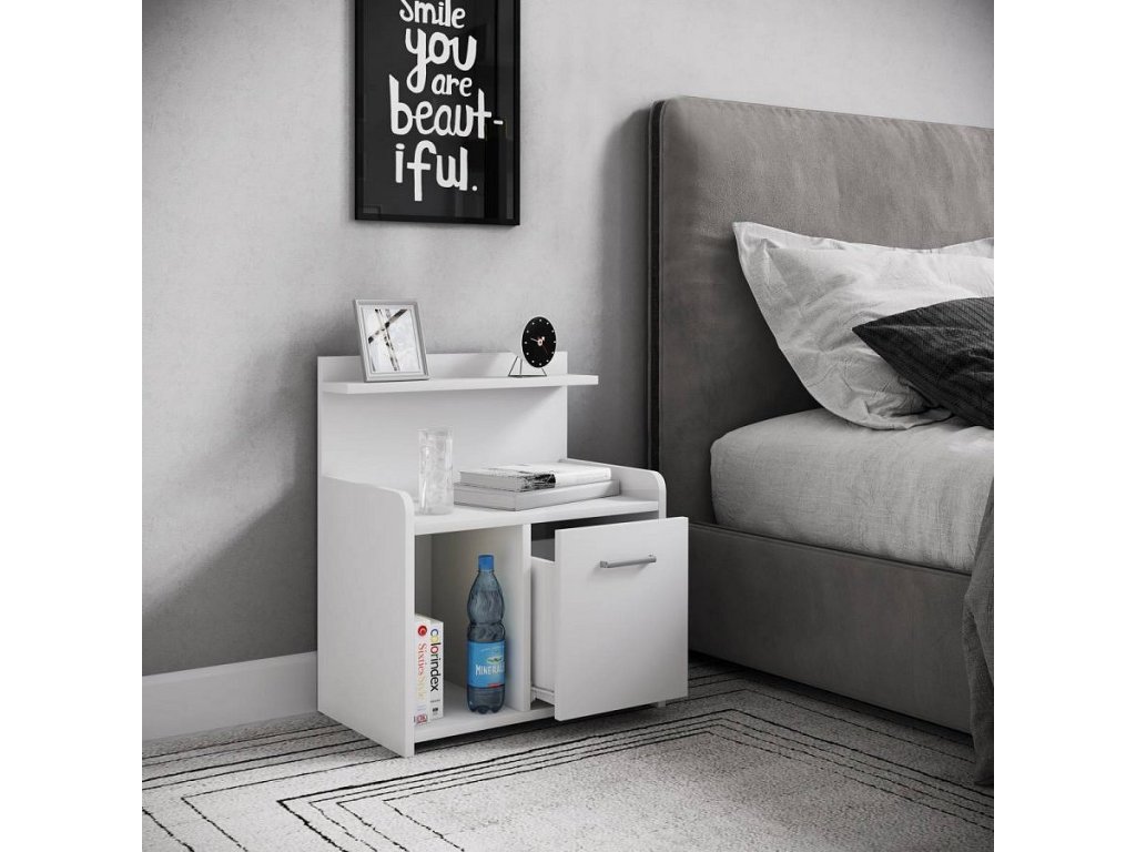 V provedení bílý noční stolek s imitací dřeva působí moderně, čistě a snadno se kombinuje s ostatním nábytkem do ložnice. Stabilní a kvalitní konstrukce zaručuje dlouhou životnost i každodenní pohodlné používání.