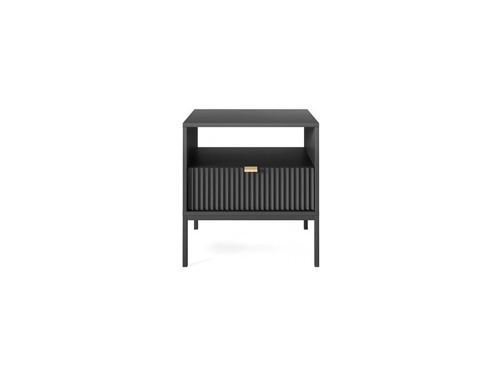 Noční stolek NOVA nabízí jednu prostornou zásuvku a otevřenou polici, které poskytují přehledné úložiště pro knihy, lampičku, mobil či další drobné předměty, které chcete mít vždy po ruce. Praktické uspořádání zajišťuje, že máte své věci přehledně uspořádané přímo vedle postele.