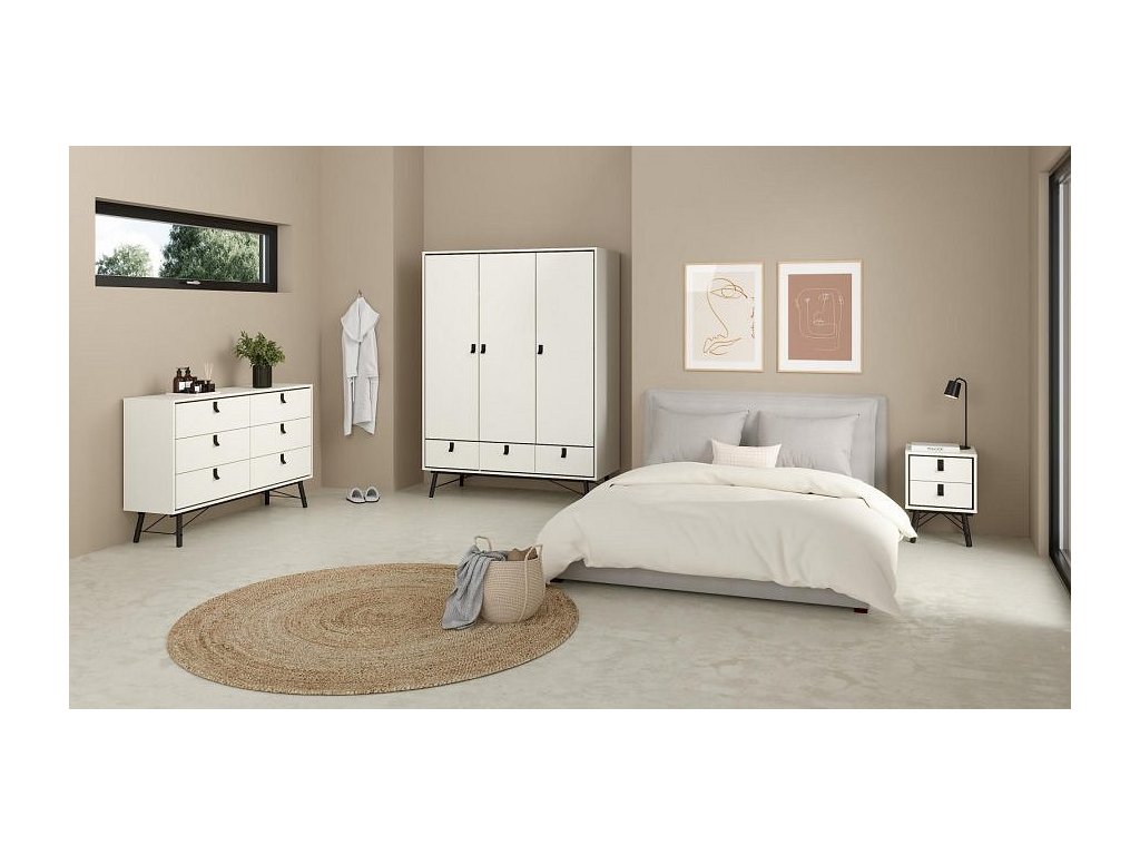 Kolekce Rain, inspirovaná nadčasovou dánskou designovou klasikou, kombinuje retro a moderní styl a nabízí široký výběr elegantního nábytku. Vyznačuje se šikmými nohami z mořeného masivního buku v kombinaci s kovovými tyčemi, úchytkami z vysoce kvalitního hliníku s matným černým povrchem a „plovoucími čely“. Iluze plovoucích čel je dosažena kombinací 12 mm vnitřní skříňky s 18 mm vnější skříňkou. Tento jedinečný design dodává celkové estetice nádech lehkosti.