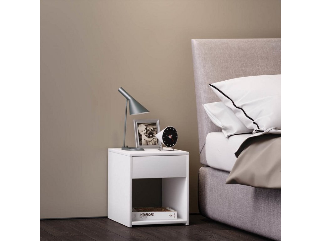 S nočním stolkem máte vždy v ložnici pořádek a po ruce vše co potřebujete. Zvláštním prvkem je zásuvka bez viditelné rukojeti, díky níž je nábytek obzvlášť moderní a nadčasový.
